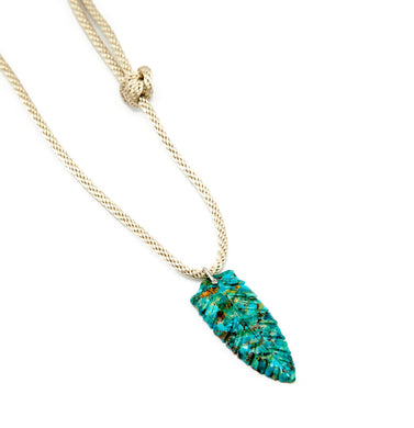 Colar em fio de seda folha esculpida em pedra turquesa Mohave