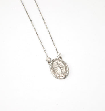 Colar oval nossa senhora das graças em prata com banho de ródio e Moissanite em volta