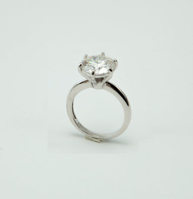 Anel solitário em prata com banho de ródio, Moissanite 6 garras, 11mm , 4,56cts