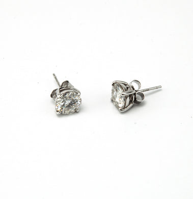Brinco solitário em prata com banho de ródio , Moissanite 8mm, 2cts