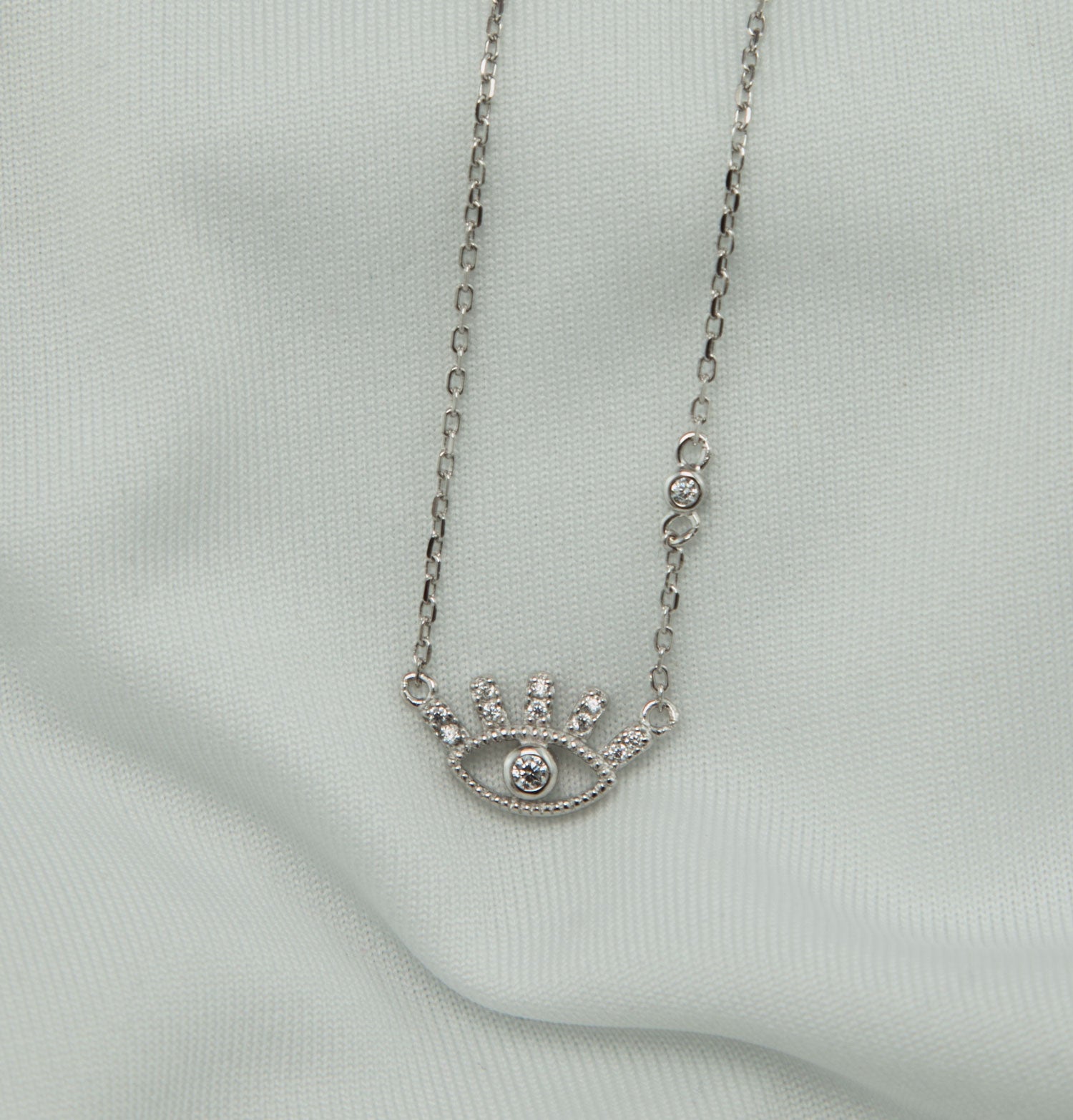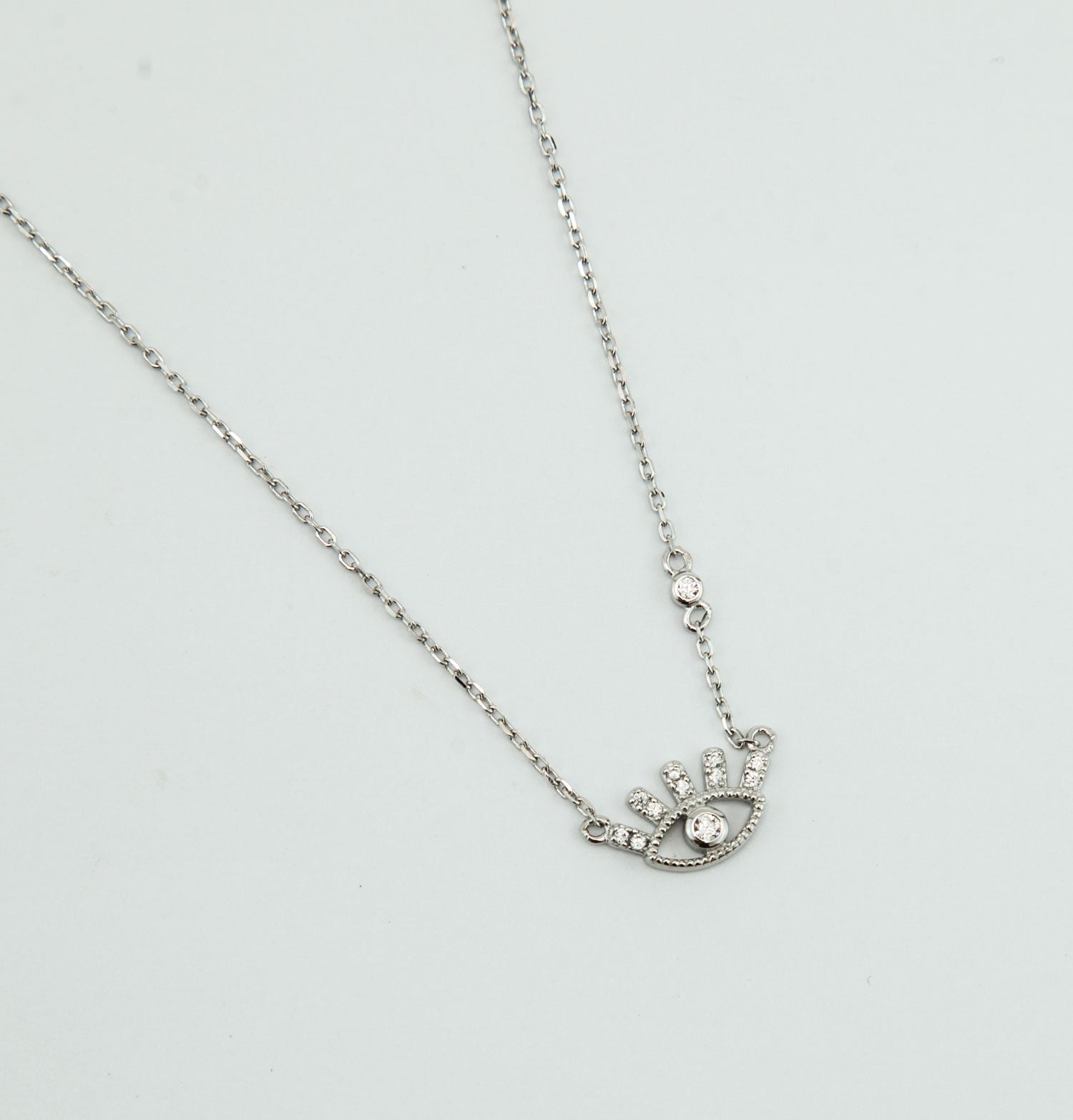 Colar em prata 925 banhado a ródio olho grego em Zirconias