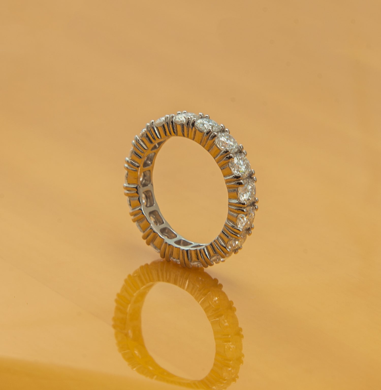 Aliança inteira em prata com banho de ródio , Moissanite 4mm , 3,95cts