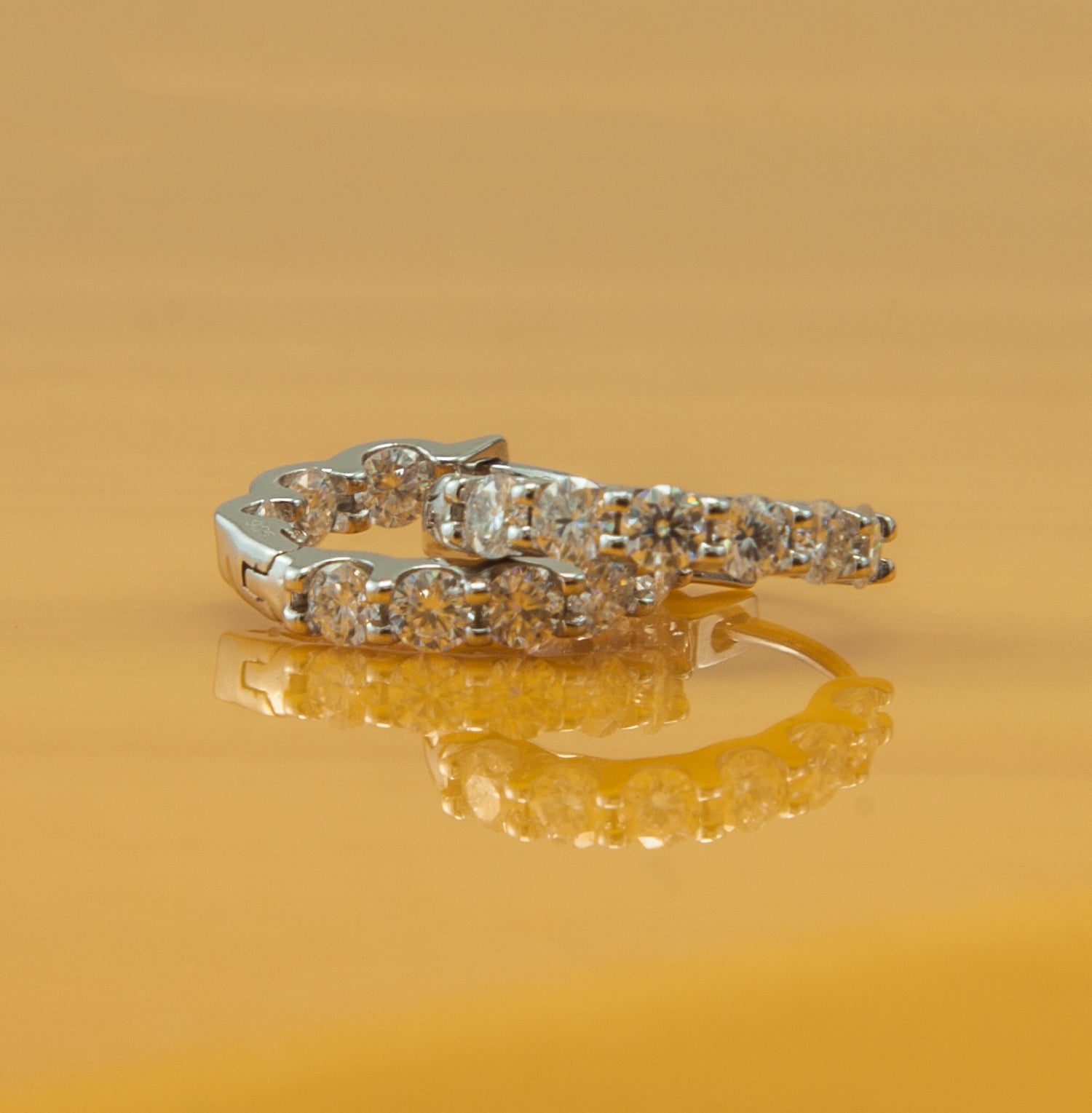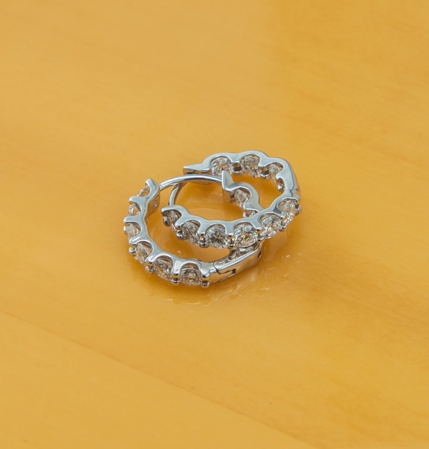 Argola em prata com banho de ródio , moissanites 3mm, 2,40cts