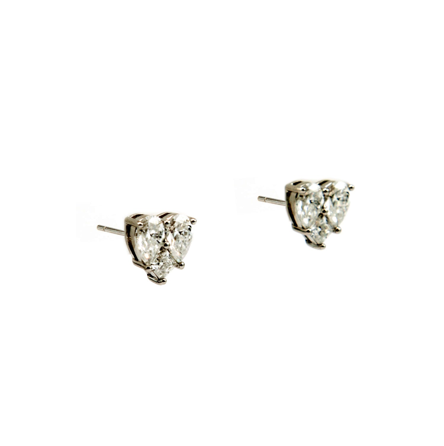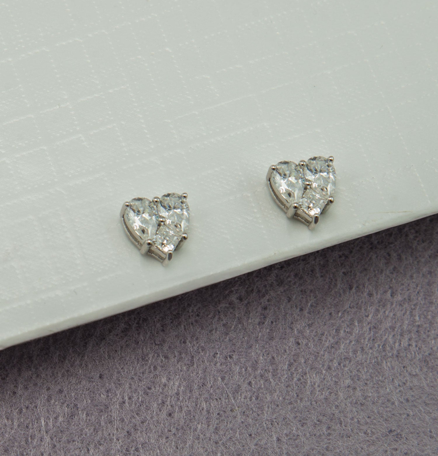 Brinco em prata 925 banhado a ródio coração em Moissanite