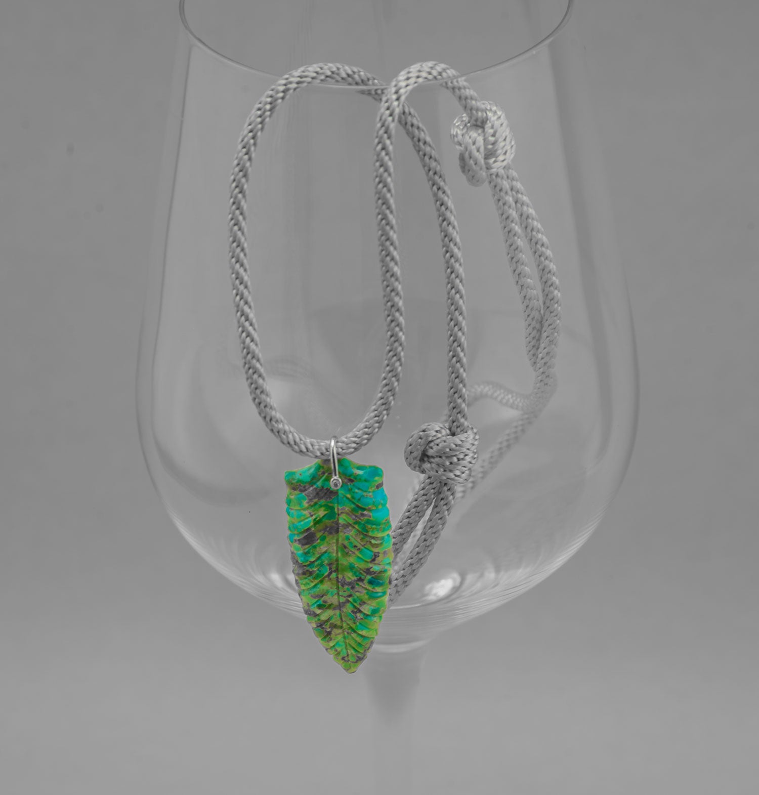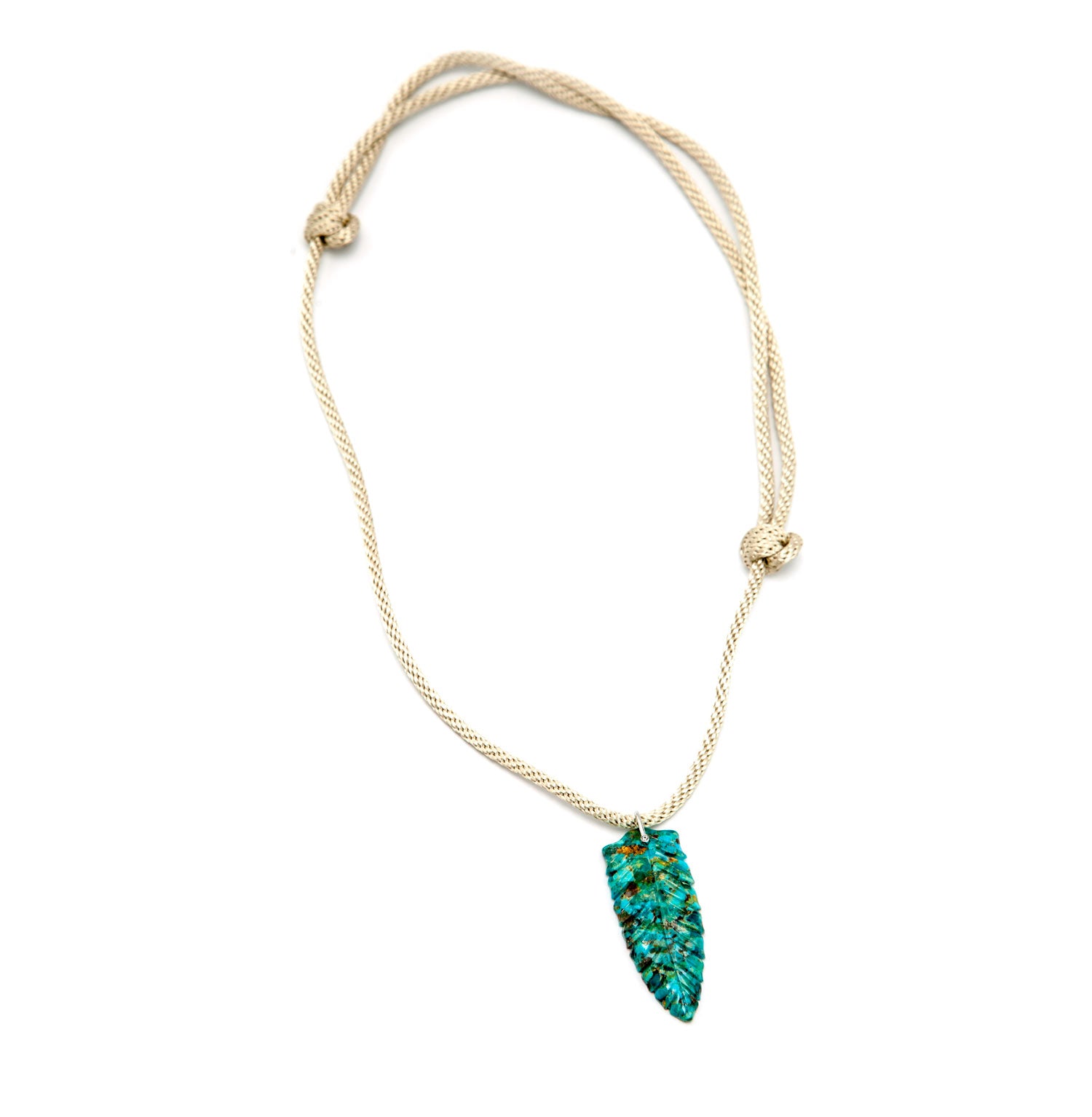 Colar em fio de seda folha esculpida em pedra turquesa Mohave