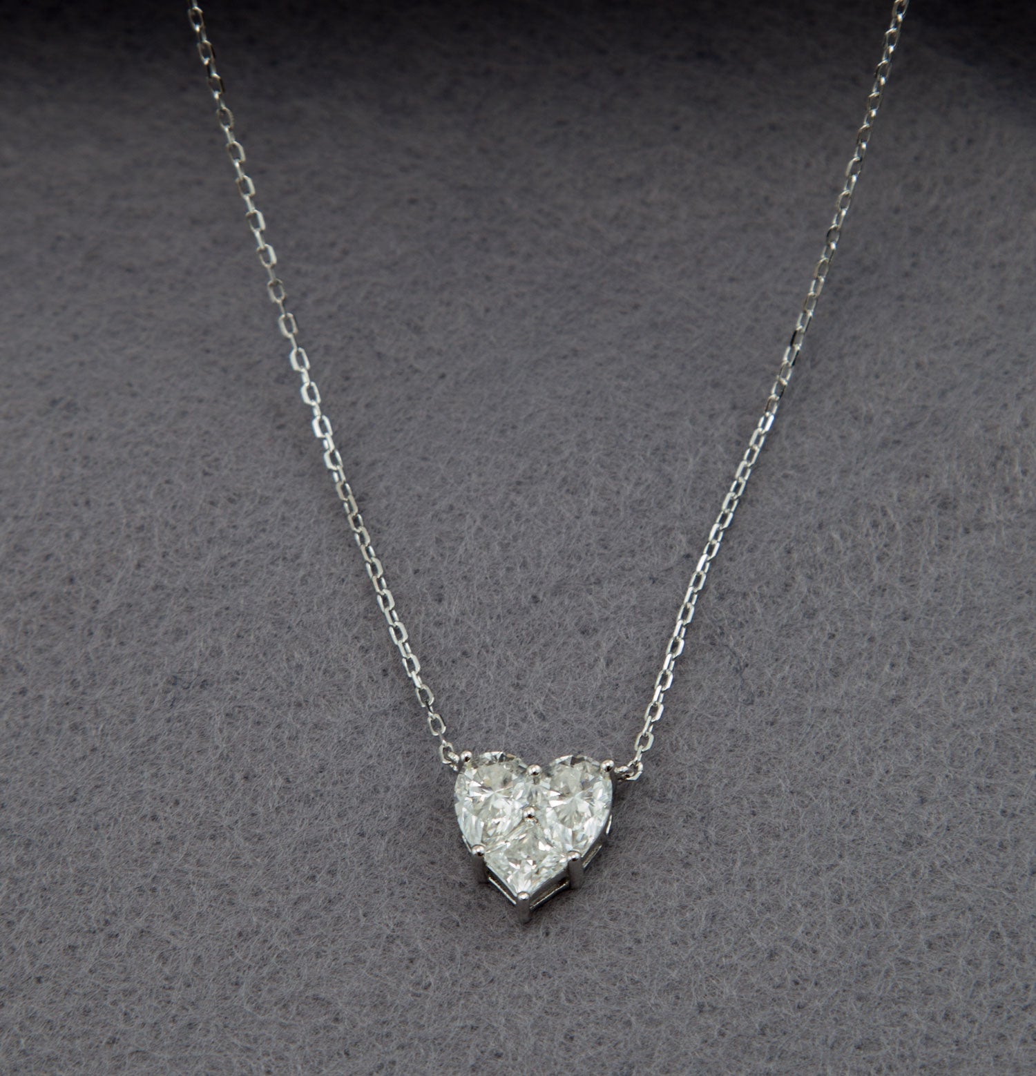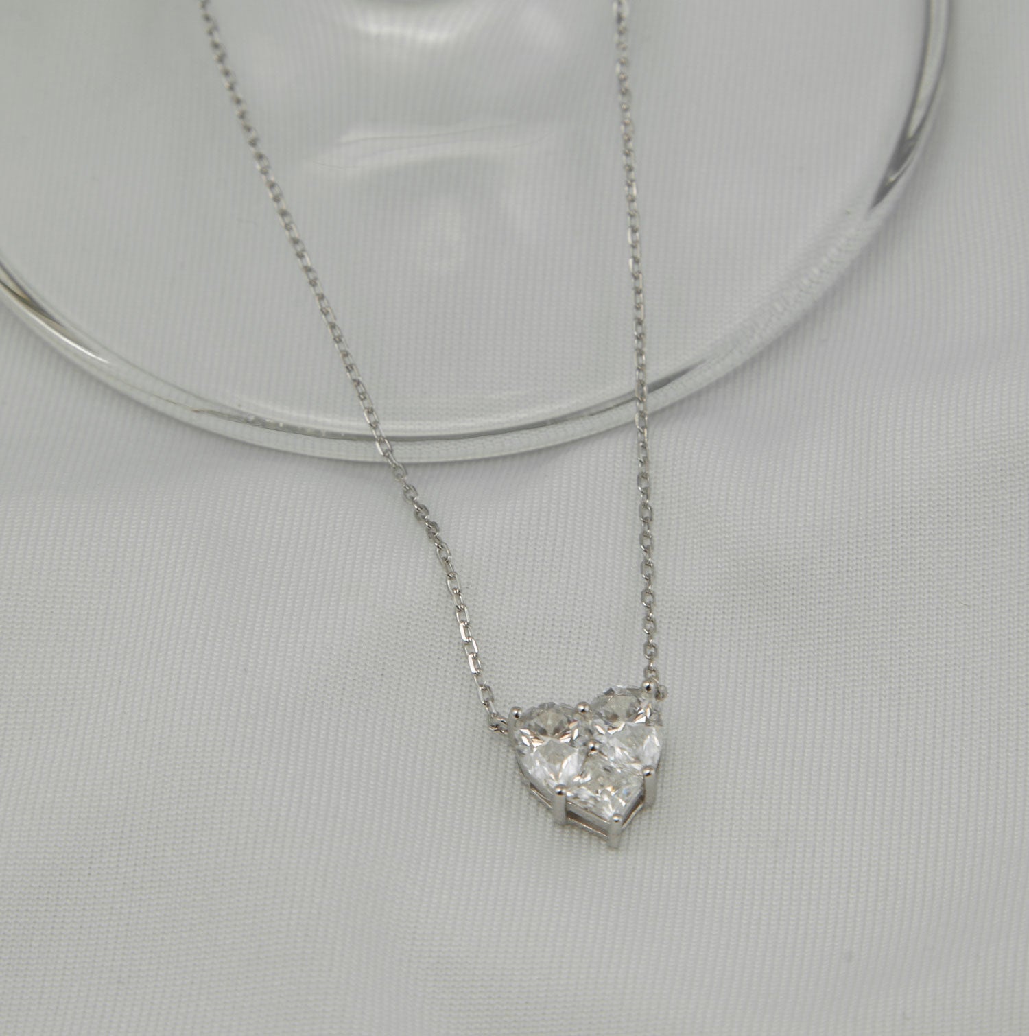 Colar em prata 925 banhado a ródio coração em Moissanite